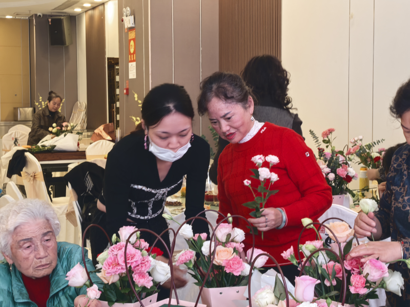 金融知识宣讲的余温未散,活动随即切换至温馨愉悦的“重阳雅集·指尖生花”插花体验环节。该行特邀专业花艺师,为长者们带来一堂生动有趣的花艺课。活动现场花香馥郁,欢声笑语交织。在老师的悉心指导下,从花材选择、枝叶修剪到色彩搭配、造型构思,老人们兴致盎然地投入创作。娇艳的玫瑰、温馨的康乃馨、清新的配叶。在长者们专注的巧思与指尖下,逐渐蜕变为一个个错落有致、生机勃勃的插花杰作。大家互相交流心得,欣赏彼此作品,脸上洋溢着满足的笑容,仿佛重拾了青春的热情。