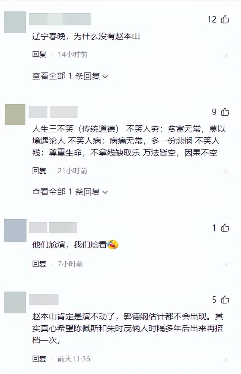 这份覆盖各年龄层、兼顾流量与实力的阵容,被外界称为 “顶配”。但阵容官宣后的评论区,并未出现预期的好评,数万条留言聚焦于同一个名字的缺失 —— 赵本山。