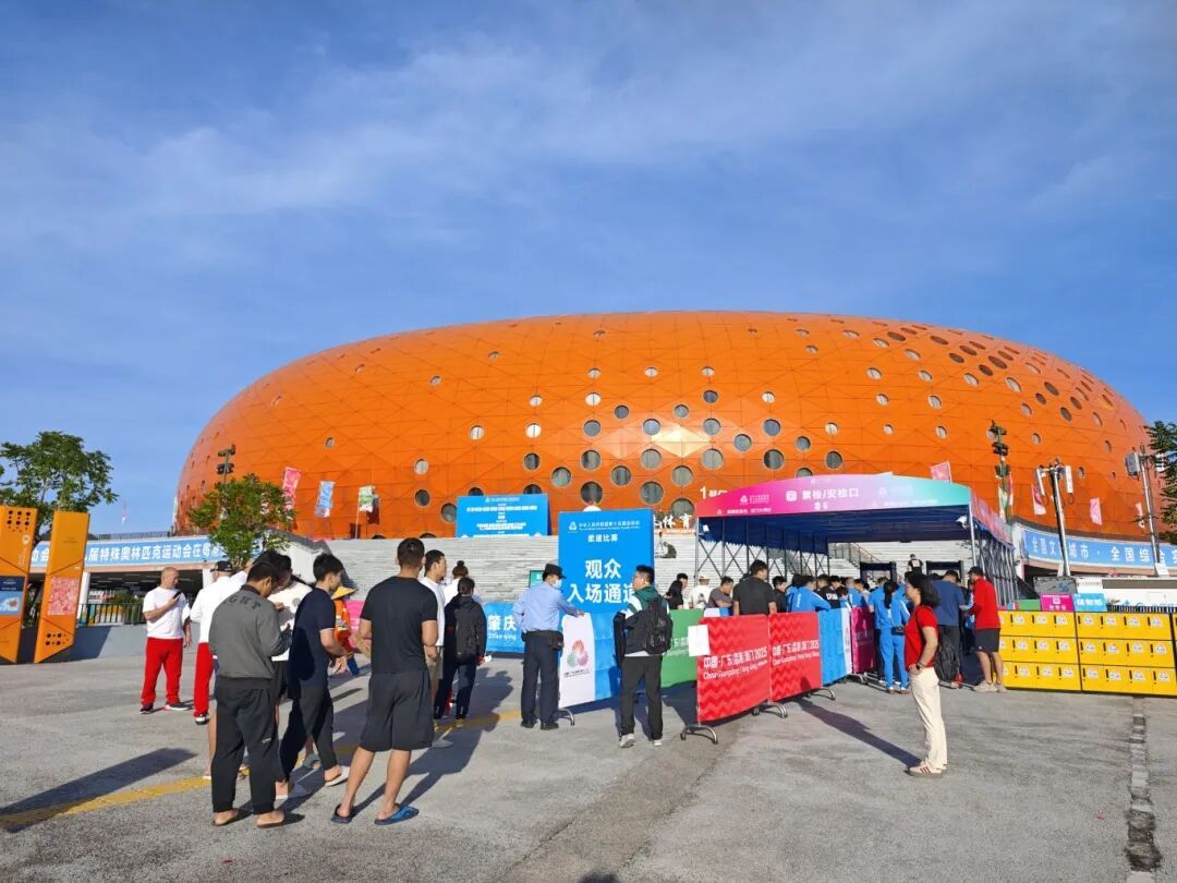 比赛现场,观众在志愿者引导下有序入场。运动员们全力拼搏的竞技精神与高超搏击技术,频频点燃全场热情、引来阵阵喝彩,实力派选手群雄逐鹿、难分伯仲,成功将比赛气氛推向高潮。